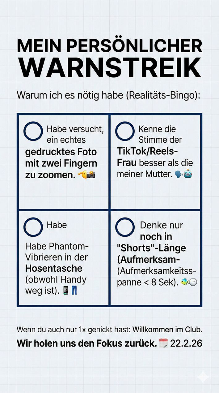 22.2.26 mache ich 24 Stunden Social-Media-Pause.